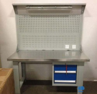 復(fù)合臺面特性臺面平整度高,撓曲度為0.8mm。表面2mm厚度為高分子材料,使臺面耐酸堿、耐磨、耐油。臺面采用高壓纖維板,使臺面更具有抗沖擊性。特別的圓弧桌角,不易受撞擊損壞。高強度塑膠包邊堅固、實用、不易損壞、不易脫落。櫸木桌面特性桌板使用櫸木與防水膠經(jīng)加壓制造而成。表面光滑平整,美觀不易變型,耐油、耐熱、耐酸、耐堿,適合一般工廠作業(yè)與模具維修,儀器置放與檢測等用途。不銹鋼包面特性桌板使用高壓合成板,表面包1-2mm砂面不銹鋼板,以達(dá)美觀耐用。耐高溫、耐磨損、耐油、使用壽命長,為多功能桌板,適合一般工廠、食品業(yè)、研究室、電子廠無塵室使用。輕型工作臺可承重300kg-500KG防火板臺面特性輕巧、美觀、耐磨、防火。層壓板臺面特性工作桌面平整,變型小,強度高,抗沖擊性好。